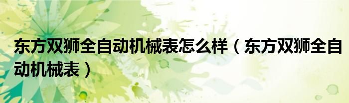 关于东方双狮全自动机械表怎么样,东方双狮全自动机械表这个很多人还不知道,今天菲菲来为大家解答以上的问题,现在让我们一起来看看吧!