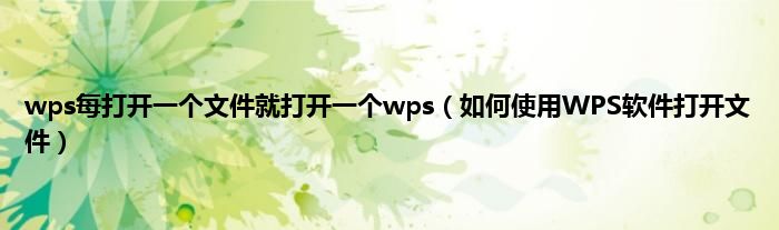 wps每打开一个文件就打开一个wps(如何使用WPS软件打开文件)