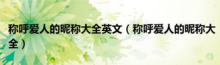 大家好,小晋来为大家解答以下问题,关于称呼爱人的昵称大全英文,称呼爱人的昵称大全很多人还不知道,今天让我们一起来看看吧!