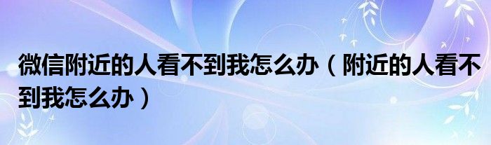 微信附近的人看不到我怎么办(附近的人看不到我怎么办)