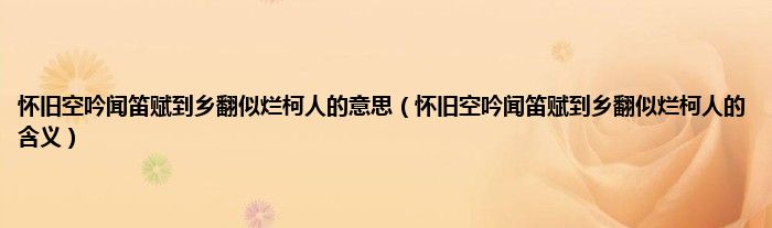 欢迎观看本篇文章,小升来为大家解答以上问题。怀旧空吟闻笛赋到乡翻似烂柯人的意思,怀旧空吟闻笛赋到乡翻似烂柯人的含义很多人还不知道,现在让我们一起来看看吧!