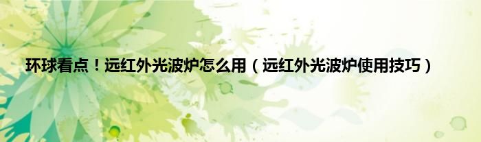 大家好,综合小编来为大家讲解下环球看点!远红外光波炉怎么用,远红外光波炉使用技巧这个很多人还不知道,现在让我们一起来看看吧!