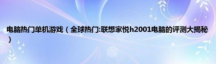大家好,综合小编来为大家讲解下电脑热门单机游戏,全球热门:联想家悦h2001电脑的评测大揭秘这个很多人还不知道,现在让我们一起来看看吧!