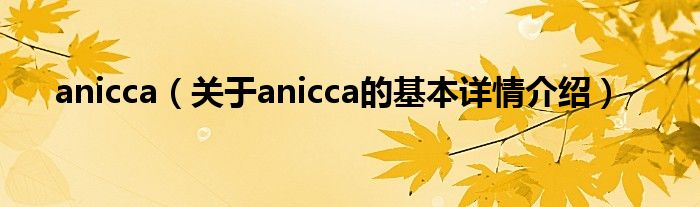 本文关于anicca的基本详情介绍就讲解完毕,希望对大家有所帮助。