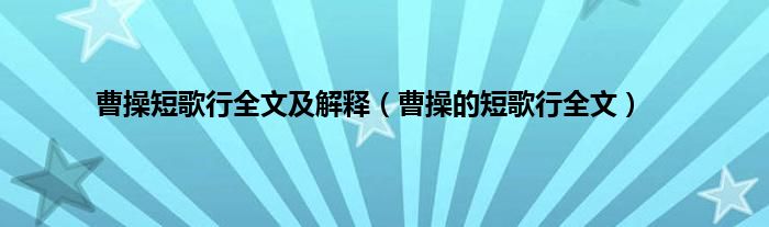 曹操短歌行全文及解释(曹操的短歌行全文)
