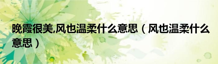 大家好,小晋来为大家解答以下问题,关于晚霞很美,风也温柔什么意思,风也温柔什么意思很多人还不知道,今天让我们一起来看看吧!
