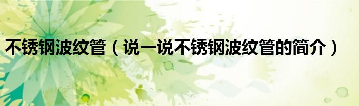 夏弥来为大家解答以下的问题,不锈钢波纹管,说一说不锈钢波纹管的简介,现在让我们一起来看看吧!