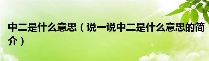 夏弥来为大家解答以下的问题,中二是什么意思,说一说中二是什么意思的简介,现在让我们一起来看看吧!