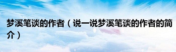 梦溪笔谈的作者(说一说梦溪笔谈的作者的简介)