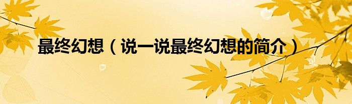 最终幻想(说一说最终幻想的简介)