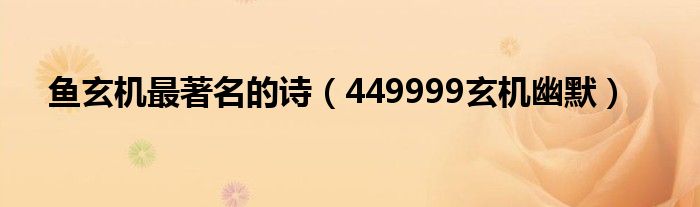 关于鱼玄机最著名的诗,449999玄机幽默这个很多人还不知道,今天菲菲来为大家解答以上的问题,现在让我们一起来看看吧!