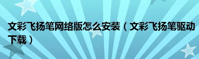 文彩飞扬笔网络版怎么安装(文彩飞扬笔驱动下载)