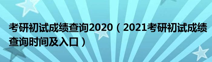 大家好,乐儿来为大家解答以下问题,考研初试成绩查询2020,2021考研初试成绩查询时间及入口很多人还不知道,现在让我们一起来看看吧!