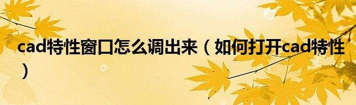 关于cad特性窗口怎么调出来,如何打开cad特性这个很多人还不知道,今天菲菲来为大家解答以上的问题,现在让我们一起来看看吧!