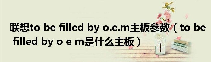 关于联想to be filled by o.e.m主板参数,to be filled by o e m是什么主板这个很多人还不知道,今天菲菲来为大家解答以上的问题,现在让我们一起来看看吧!