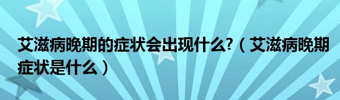 大家好,乐天来为大家解答以下的问题,艾滋病晚期的症状会出现什么?,艾滋病晚期症状是什么很多人还不知道,现在让我们一起来看看吧!