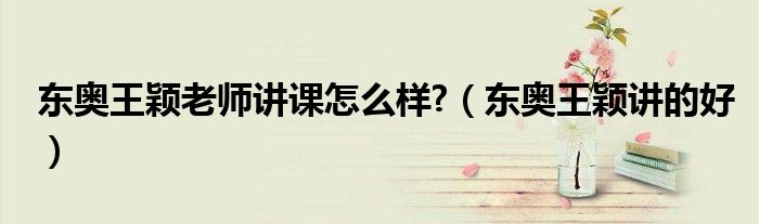 关于东奥王颖老师讲课怎么样?,东奥王颖讲的好这个很多人还不知道,今天菲菲来为大家解答以上的问题,现在让我们一起来看看吧!