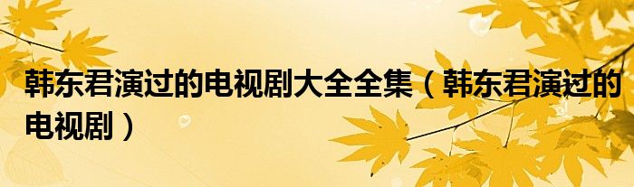 关于韩东君演过的电视剧大全全集,韩东君演过的电视剧这个很多人还不知道,今天菲菲来为大家解答以上的问题,现在让我们一起来看看吧!