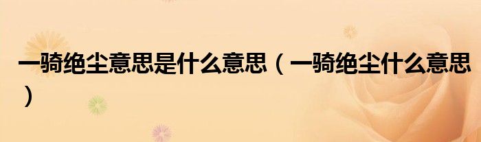 关于一骑绝尘意思是什么意思,一骑绝尘什么意思这个很多人还不知道,今天菲菲来为大家解答以上的问题,现在让我们一起来看看吧!