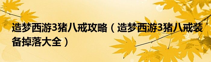 关于造梦西游3猪八戒攻略,造梦西游3猪八戒装备掉落大全这个很多人还不知道,今天菲菲来为大家解答以上的问题,现在让我们一起来看看吧!
