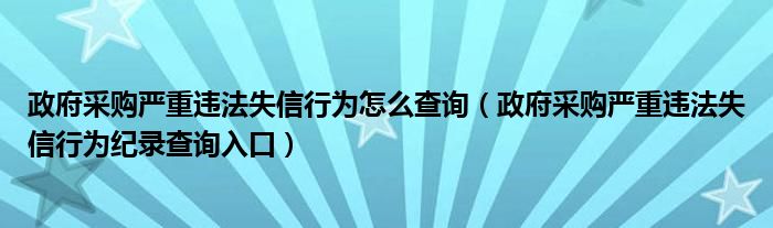 关于政府采购严重违法失信行为怎么查询,政府采购严重违法失信行为纪录查询入口这个很多人还不知道,今天菲菲来为大家解答以上的问题,现在让我们一起来看看吧!