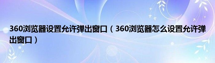 360浏览器设置允许弹出窗口(360浏览器怎么设置允许弹出窗口)