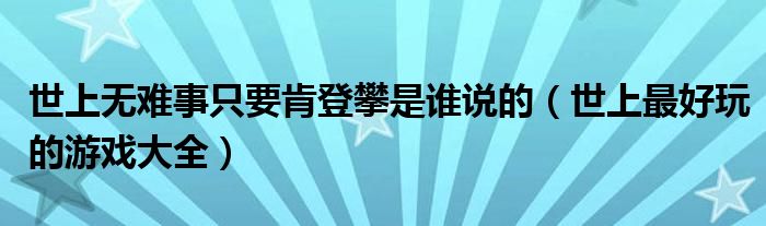 关于世上无难事只要肯登攀是谁说的,世上最好玩的游戏大全这个很多人还不知道,今天菲菲来为大家解答以上的问题,现在让我们一起来看看吧!