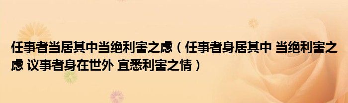 关于任事者当居其中当绝利害之虑,任事者身居其中 当绝利害之虑 议事者身在世外 宜悉利害之情这个很多人还不知道,今天菲菲来为大家解答以上的问题,现在让我们一起来看看吧!