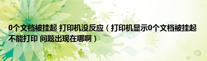 0个文档被挂起打印机没反应(打印机显示0个文档被挂起不能打印问题出现在哪啊)