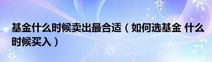 关于基金什么时候卖出最合适,如何选基金 什么时候买入这个很多人还不知道,今天菲菲来为大家解答以上的问题,现在让我们一起来看看吧!