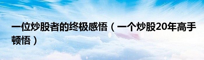 一位炒股者的终极感悟(一个炒股20年高手顿悟)