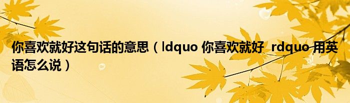 关于你喜欢就好这句话的意思,ldquo 你喜欢就好 rdquo 用英语怎么说这个很多人还不知道,今天菲菲来为大家解答以上的问题,现在让我们一起来看看吧!
