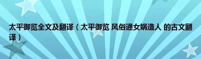 关于太平御览全文及翻译,太平御览 风俗通女娲造人 的古文翻译这个很多人还不知道,今天菲菲来为大家解答以上的问题,现在让我们一起来看看吧!