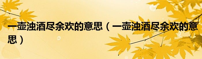 大家好,小夏来为大家讲解下。一壶浊酒尽余欢的意思,一壶浊酒尽余欢的意思很多人还不知道,现在让我们一起来看看吧!