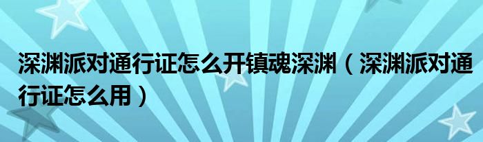 深渊派对通行证怎么开镇魂深渊(深渊派对通行证怎么用)