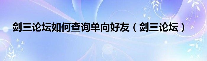 剑三论坛如何查询单向好友(剑三论坛)