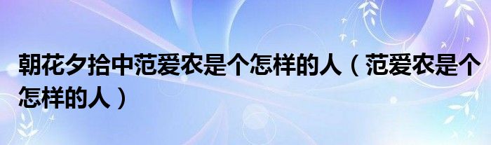 朝花夕拾中范爱农是个怎样的人(范爱农是个怎样的人)