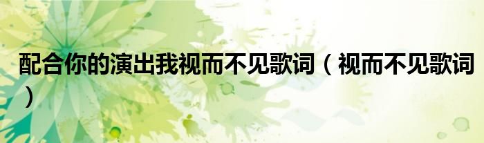 大家好,我是小科,我来为大家解答以上问题。配合你的演出我视而不见歌词,视而不见歌词很多人还不知道,现在让我们一起来看看吧!