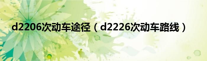 大家好,我是小科,我来为大家解答以上问题。d2206次动车途径,d2226次动车路线很多人还不知道,现在让我们一起来看看吧!