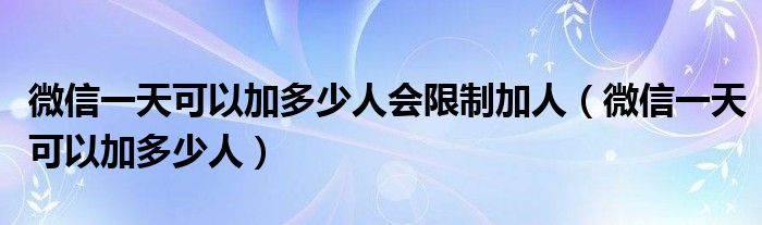 大家好,小联来为大家解答以上的问题。微信一天可以加多少人会限制加人,微信一天可以加多少人这个很多人还不知道,现在让我们一起来看看吧!