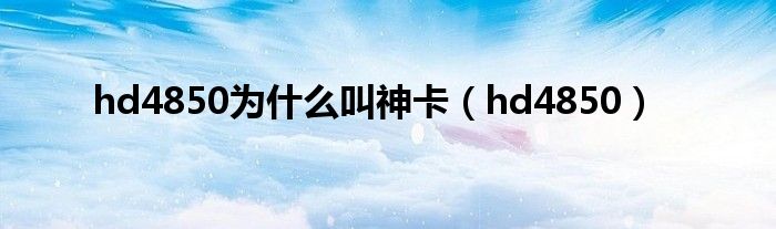 hd4850为什么叫神卡(hd4850)