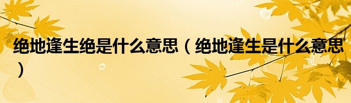 大家好,小晋来为大家解答以下问题,关于绝地逢生绝是什么意思,绝地逢生是什么意思很多人还不知道,今天让我们一起来看看吧!
