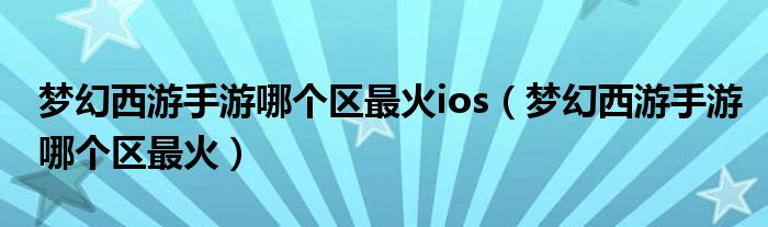 梦幻西游手游哪个区最火ios(梦幻西游手游哪个区最火)