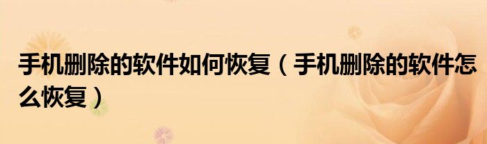 大家好,小晋来为大家解答以下问题,关于手机删除的软件如何恢复,手机删除的软件怎么恢复很多人还不知道,今天让我们一起来看看吧!