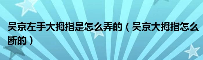 大家好,小晋来为大家解答以下问题,关于吴京左手大拇指是怎么弄的,吴京大拇指怎么断的很多人还不知道,今天让我们一起来看看吧!
