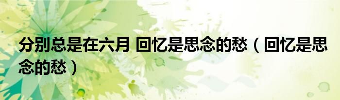 大家好,我是小科,我来为大家解答以上问题。分别总是在六月 回忆是思念的愁,回忆是思念的愁很多人还不知道,现在让我们一起来看看吧!