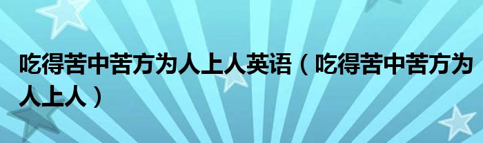 大家好,我是小科,我来为大家解答以上问题。吃得苦中苦方为人上人英语,吃得苦中苦方为人上人很多人还不知道,现在让我们一起来看看吧!