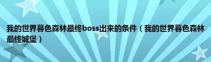 大家好,小联来为大家解答以上的问题。我的世界暮色森林最终boss出来的条件,我的世界暮色森林最终城堡这个很多人还不知道,现在让我们一起来看看吧!