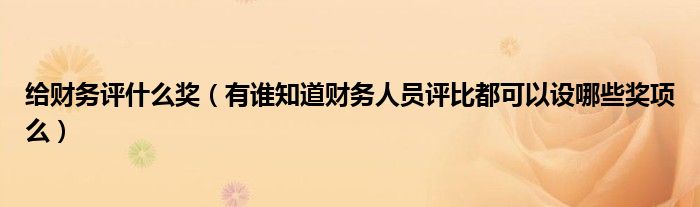 大家好,小联来为大家解答以上的问题。给财务评什么奖,有谁知道财务人员评比都可以设哪些奖项么这个很多人还不知道,现在让我们一起来看看吧!