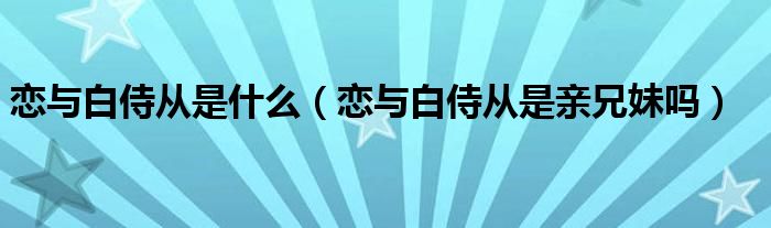 大家好,小晋来为大家解答以下问题,关于恋与白侍从是什么,恋与白侍从是亲兄妹吗很多人还不知道,今天让我们一起来看看吧!